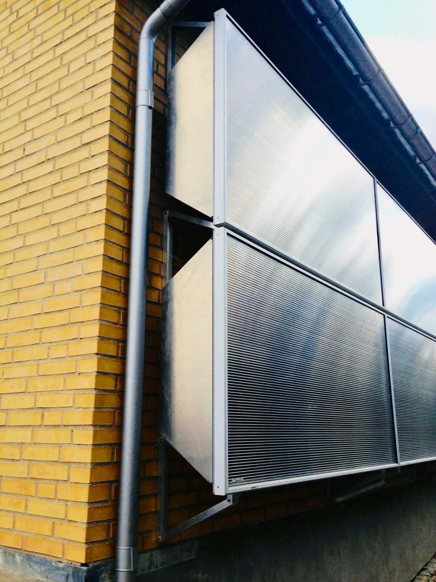 Advantage: each 2m x 1m x 0.36m module recovers large volumes of air.
