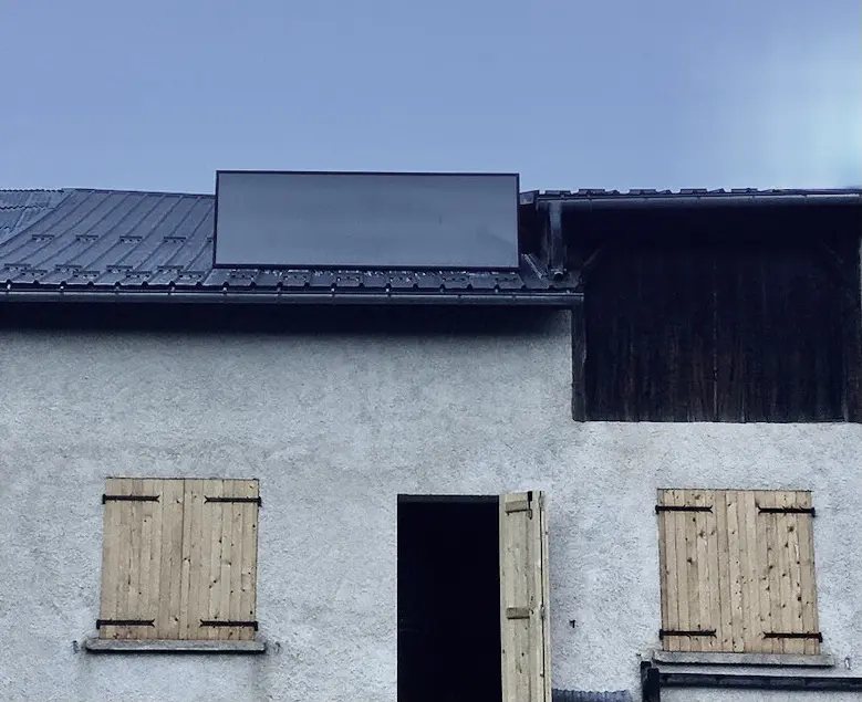 The panel is on the roof because it was not possible to place it on the wall (shade on the facade and sunshine).