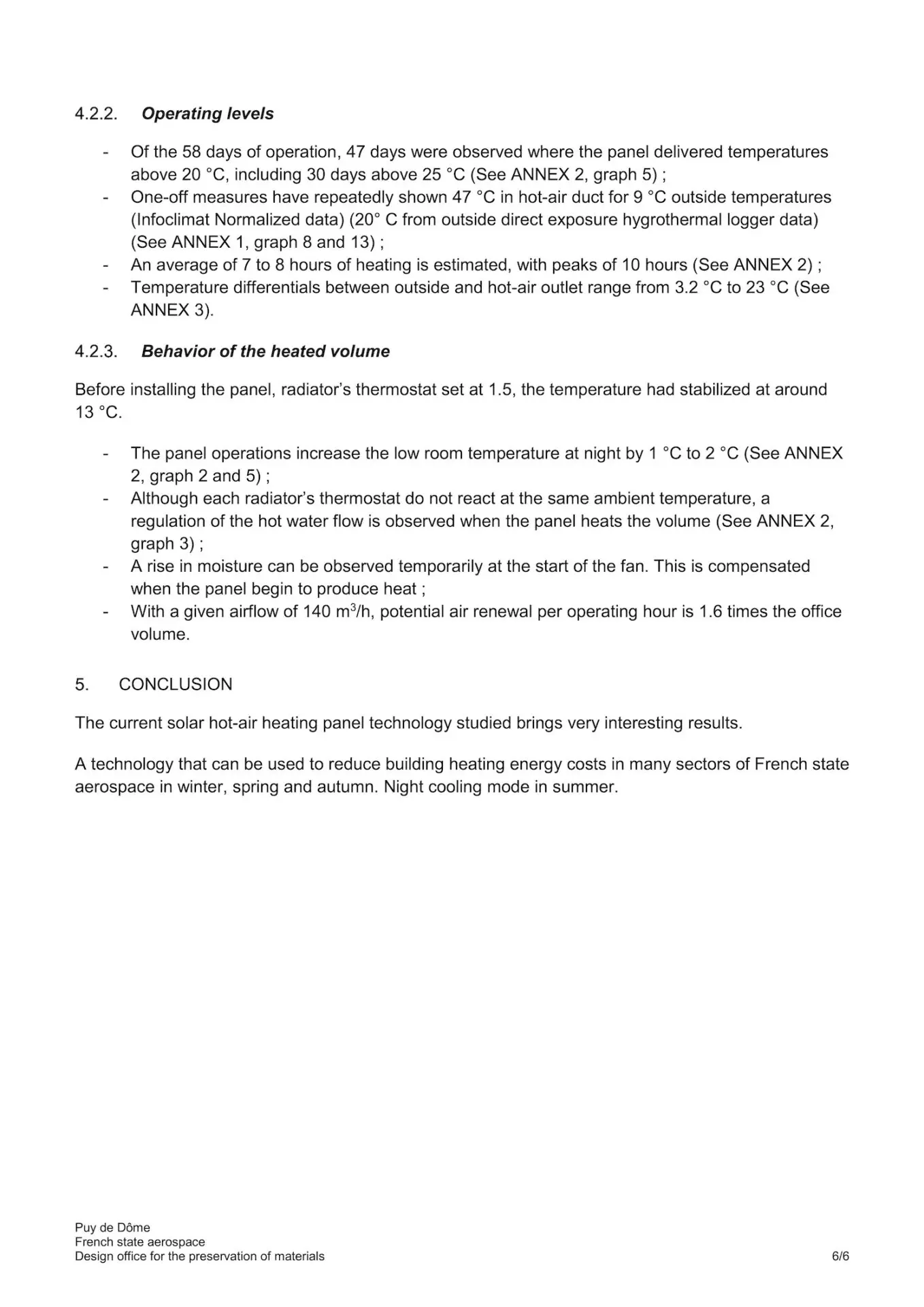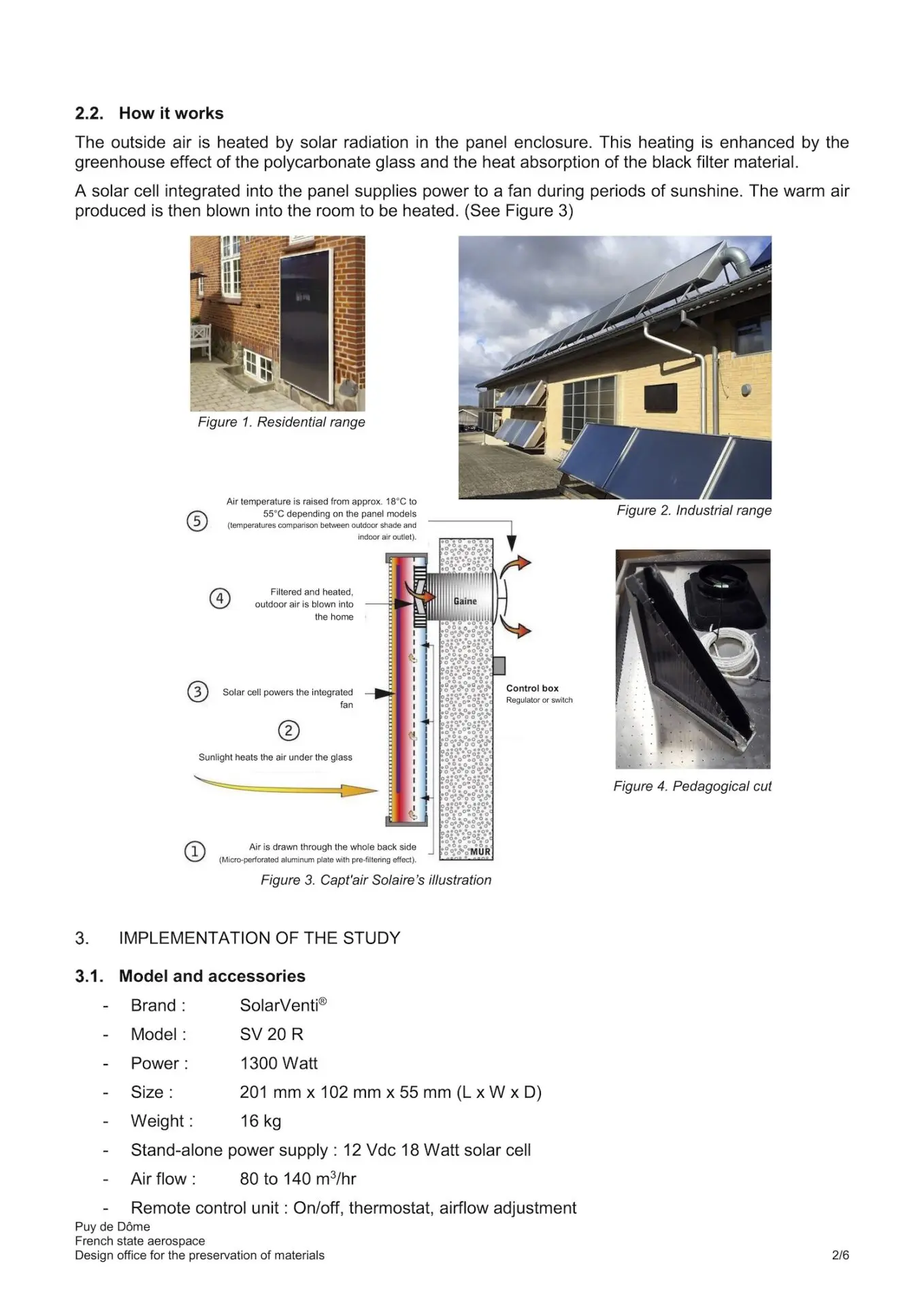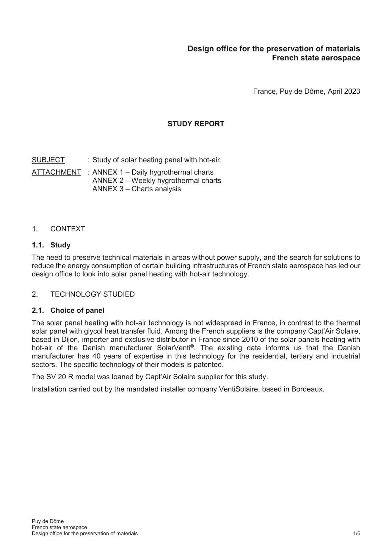 Le Bureau d’étude en préservation de matériels a réalisé une étude détaillée sur le capteur solaire à air SolarVenti type SV20