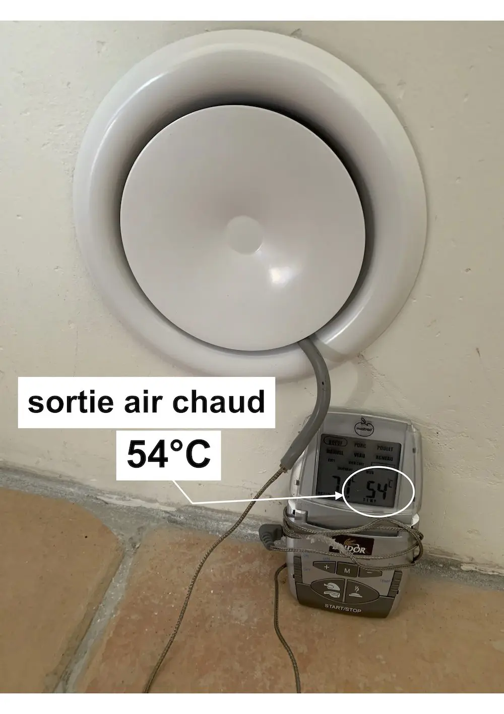 J’ai mesuré plus 50°C à la bouche d’insufflation en sortie du capteur.